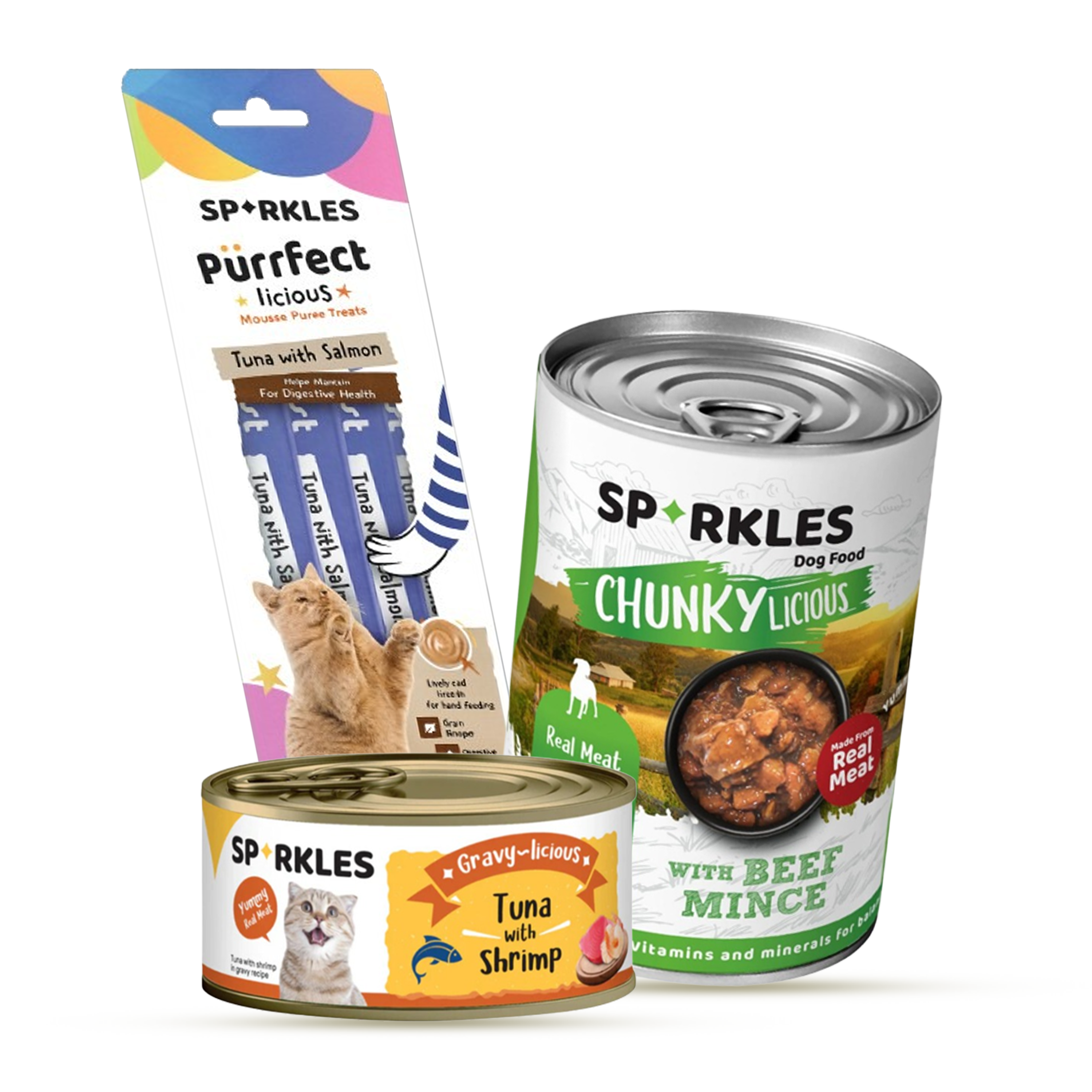 أطعمة القطط من سباركلز تتميز بأنها تحتوي على بروتين طبيعي ورطوبة عالية تساعد في الترطيب، إضافة إلى مادة التاورين الضرورية لصحة القلب والبصر. أما وجبات الكلاب والقطط من سباركل بت تريتس فهي تدعم صحة المفاصل، وتقوي جهاز المناعة، وتحسّن حالة الجلد والفراء بفضل مكوناتها الطبيعية.