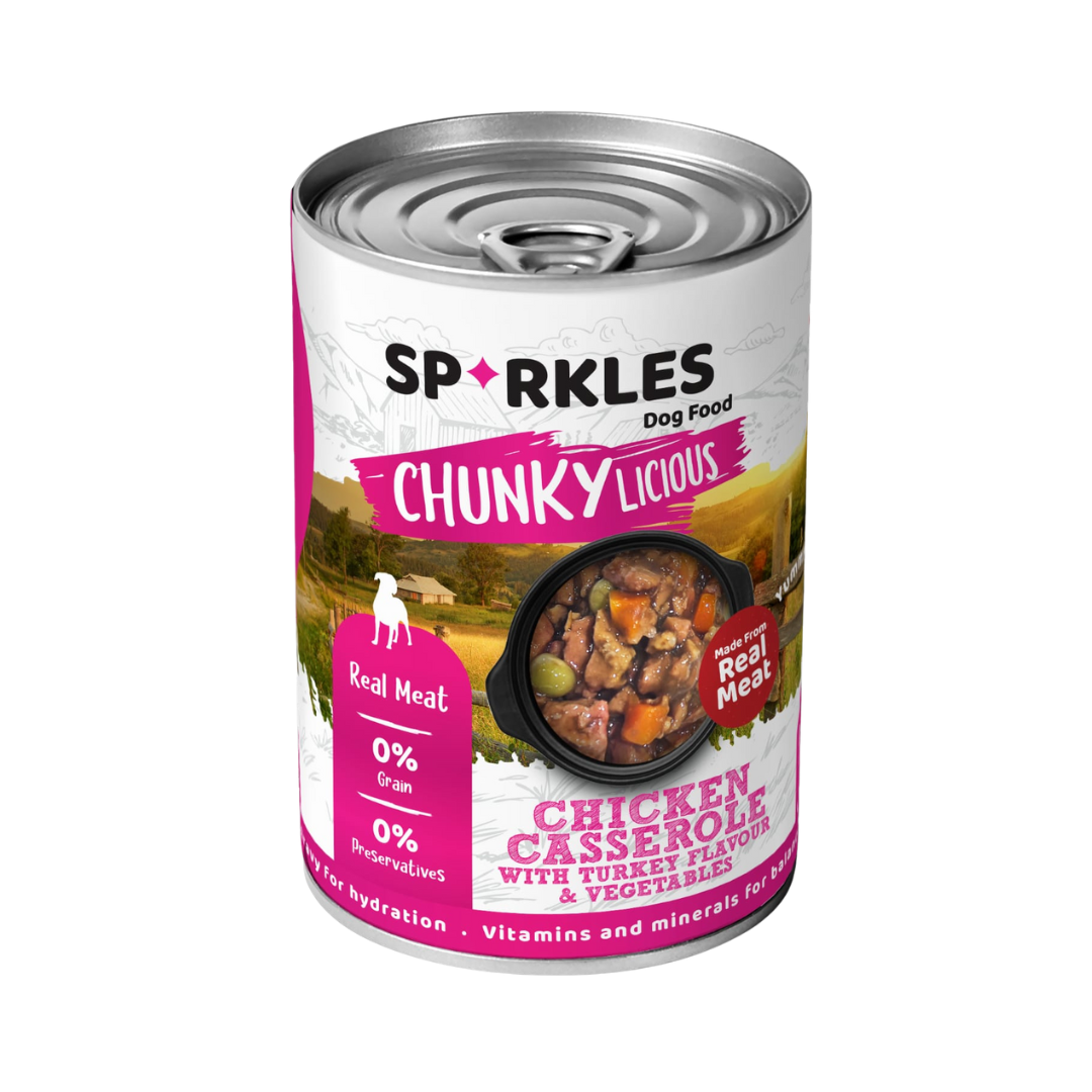 Dog Wet Food, Real Meat chunks in Chicken Casserole with Turkey and Vegetables