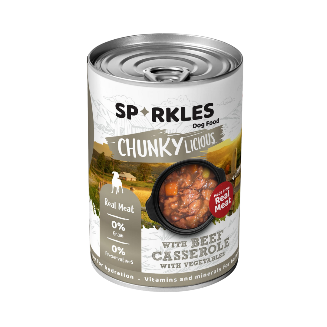 Dog Wet Food, Real Meat chunks in Beef Casserole with Vegetables